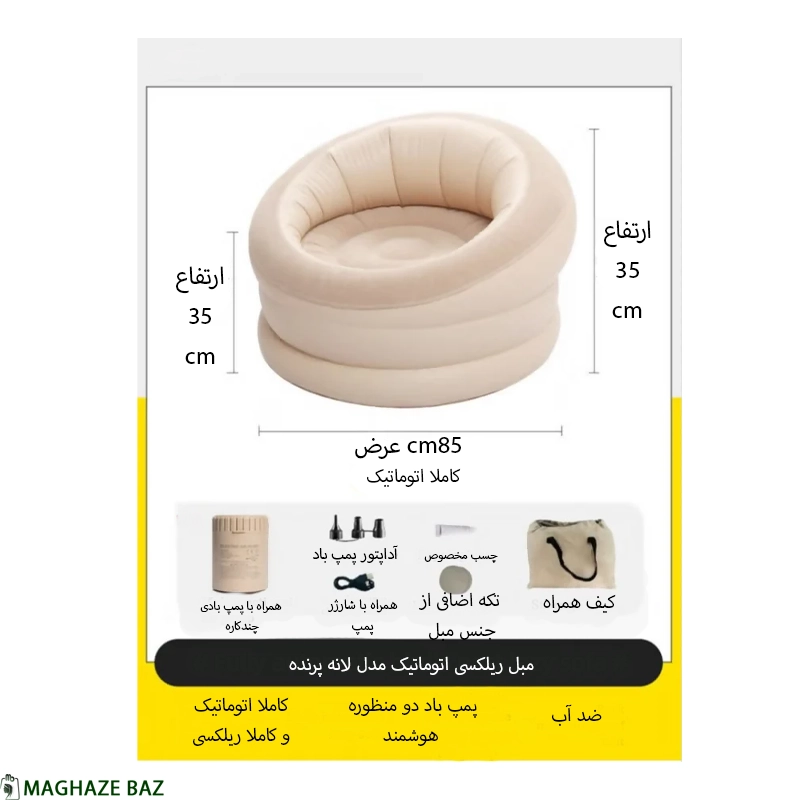مبل بادی مدل گرد تک نفره با پمپ باد داخلی شارژ شونده