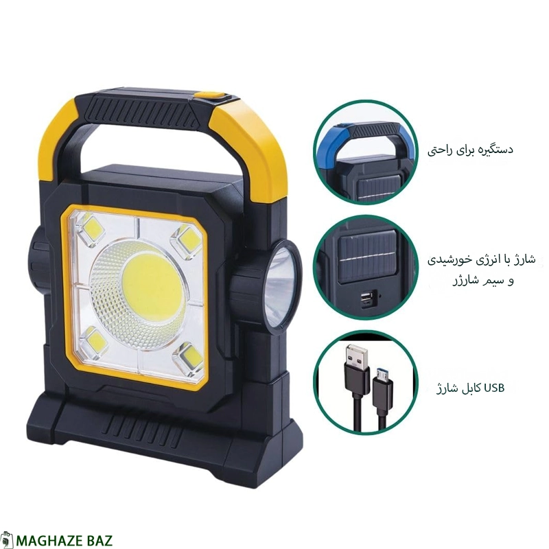چراغ قوه و پروژکتور کمپی دارای پاوربانک شارژ با انرژی خورشیدی مدل Hello Cloud