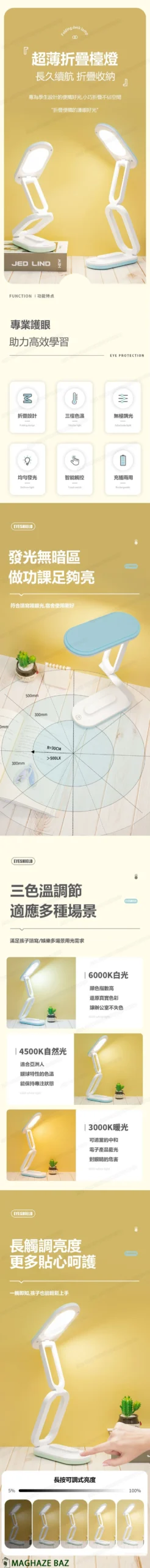 چراغ مطالعه تاشو مدل مولتی لمسی 2 رنگ سبز و آبی دیمردار