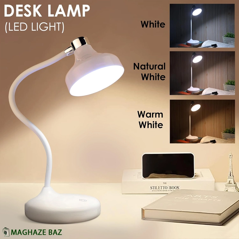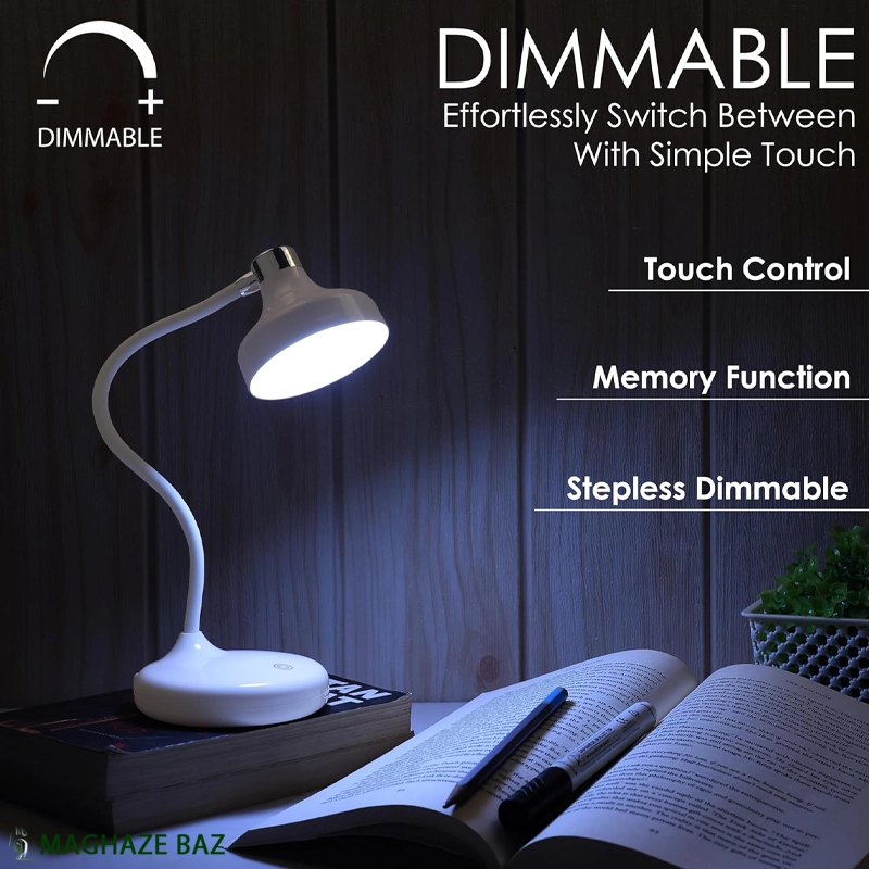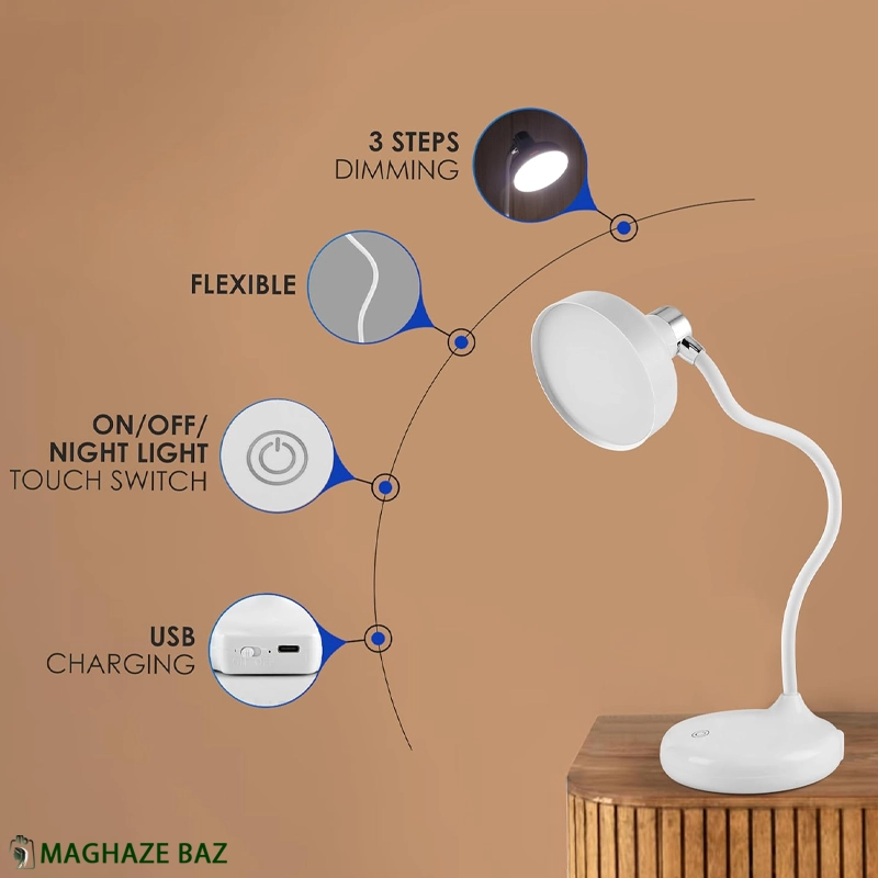 چراغ مطالعه شارژی دیمردار رنگ سفید طلایی