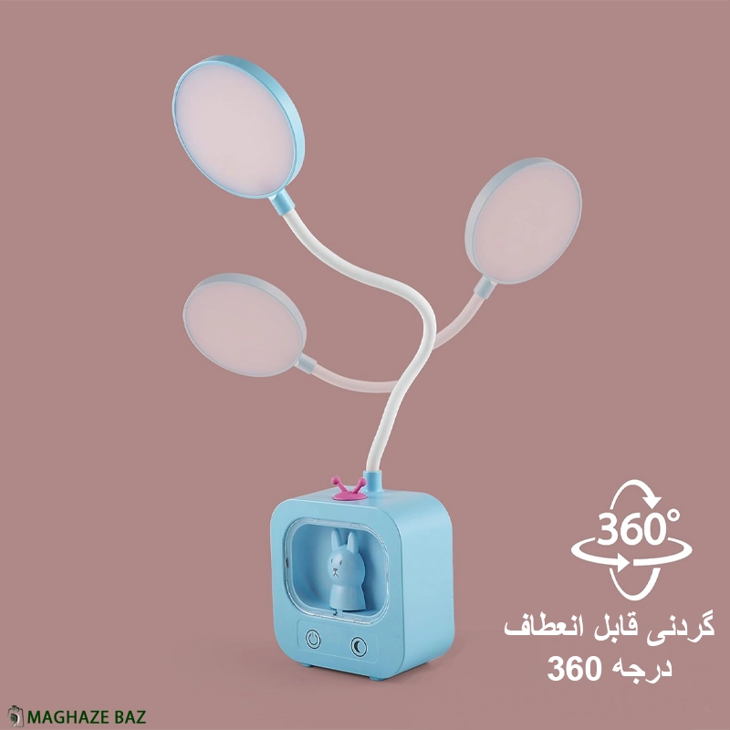 چراغ مطالعه تاشو چندکاره رومیزی 2LED فن، آیینه دار و شارژر USB