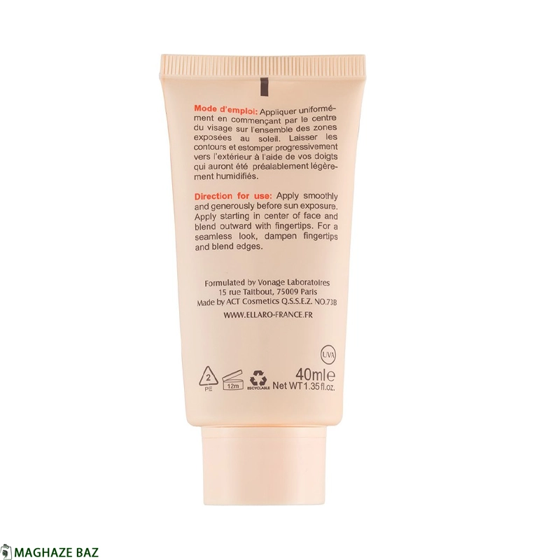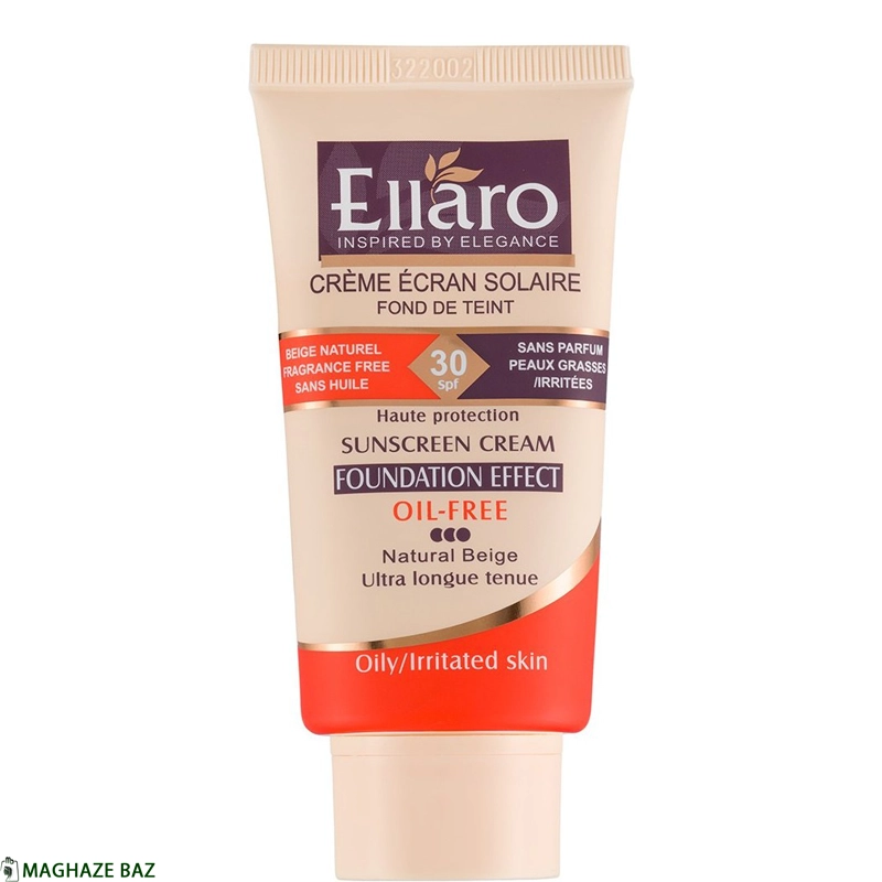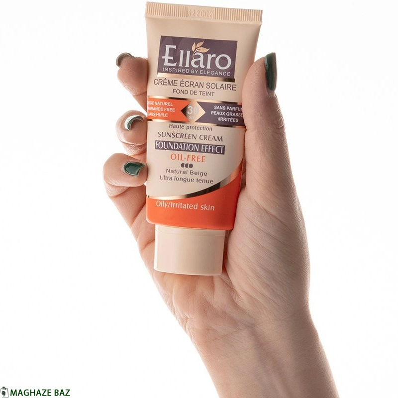 کرم ضد آفتاب کرم پودری الارو (Ellaro) مناسب انواع پوست رنگ بژ طبیعی حجم 40 میلیلیتر